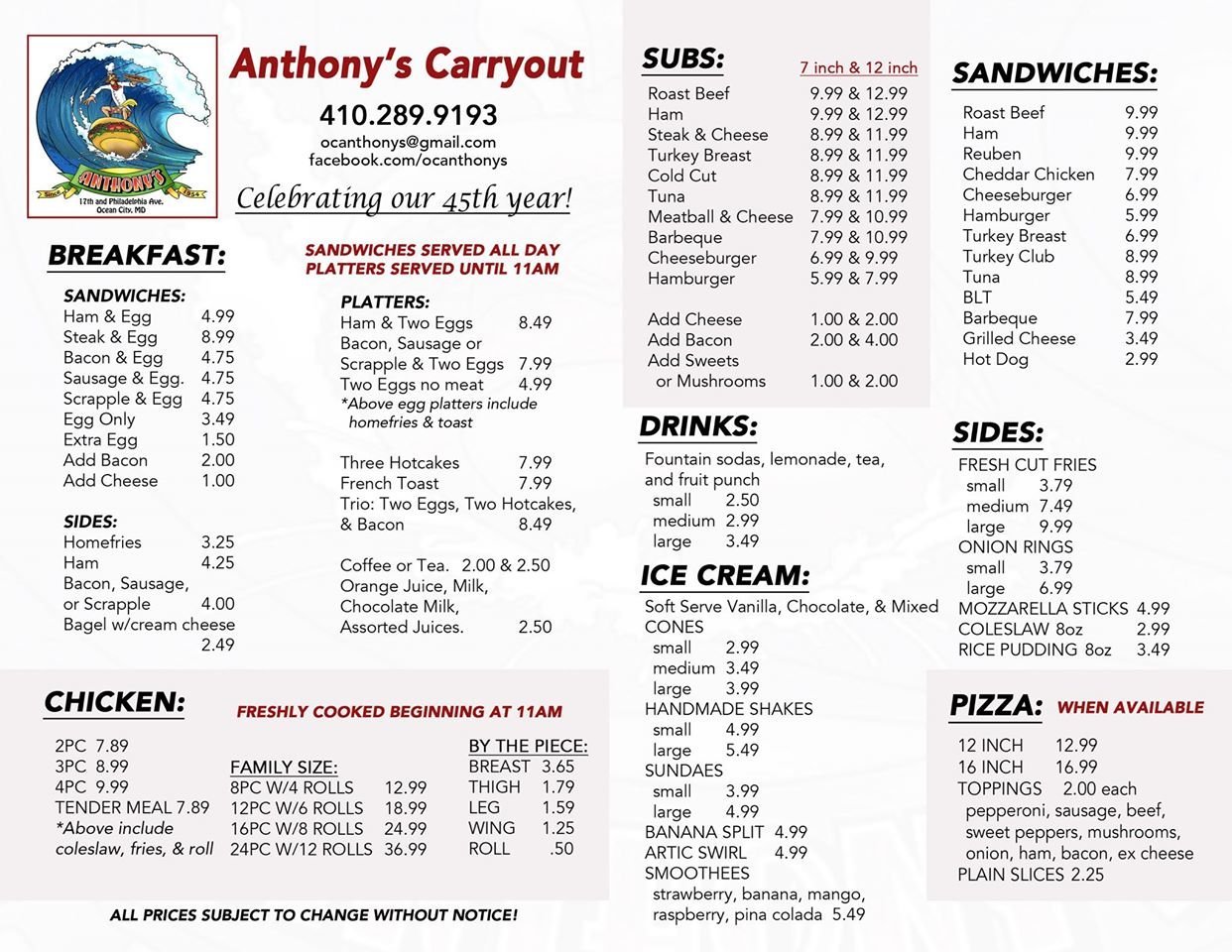 For locals and visitors alike, Anthony’s Carryout has established itself as an OCMD favorite for nearly 70 years since it first began as a Tastee-Freez in 1954. Famous for their hand-carved roast beef, Anthony’s continues to serve mouth-watering favorites today throughout the bustling summer season. Stop in for hot breakfast sandwiches before hitting the beach, or come by for lunch and enjoy cheesesteaks, fried chicken, and incredible desserts!